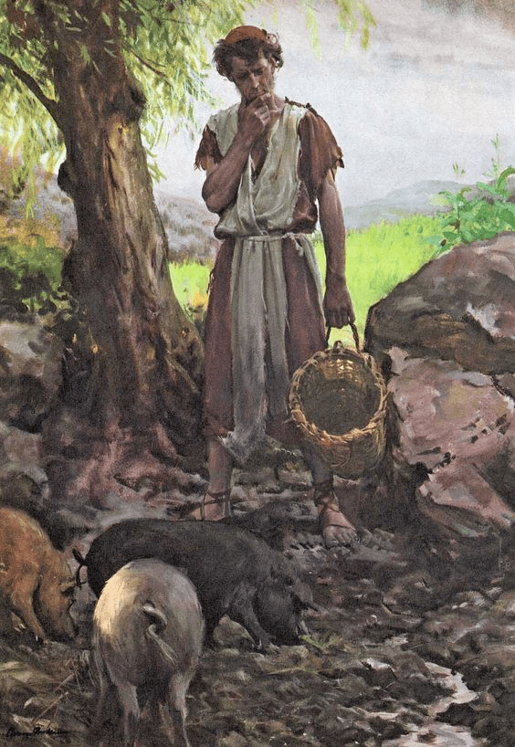 “[Jesus] also said: A man had two sons. The younger of them said to his father, ‘Father, give me the share of the estate I have coming to me.’ So he distributed the assets to them. Not many days later, the younger son gathered together all he had and travelled to a distant country, where he squandered his estate in foolish living. After he had spent everything, a severe famine struck that country and he had nothing. … When he came to his senses, he said, ‘How many of my father’s hired workers have more than enough food and here I am dying of hunger! I’ll get up, go to my father, and say to him, ‘Father, I have sinned against heaven and in your sight. I’m no longer worthy to be called your son. Make me like one of your hired workers.’ So he got up and went to his father. But while the son was still a long way off, his father saw him and was filled with compassion. He ran, threw his arms around his neck, and kissed him. The son said to him, ‘Father, I have sinned against heaven and in your sight. I’m no longer worthy to be called your son.’